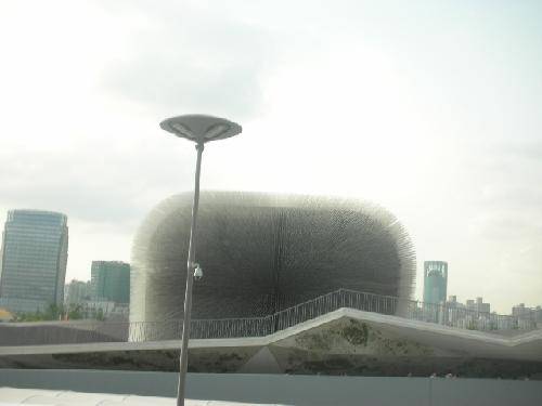 世博园里的各个场馆外观真是别具特色。形成了一道亮丽的风景线。坐着世博公交车在路上前行,许多美丽的场馆一一展现在眼前。哇,西班牙馆,全是用棕黄色的藤条编制而成,听说一共用了八千多块色泽深浅不一的藤条板,真是很费功夫啊!给我留下深刻印象的还有以色列馆和英国馆。以色列馆就像一只海中的贝壳,又好像一双环抱在一起的手,设计很独特。以色列馆的一边是用石头制成的,另一边是用玻璃制成的,真是别出心裁!而英国则是一个巨大的蒲公英,上面的无数根“触须”随风摇曳,就像一只风中盛开的蒲公英,又像一只可爱的小刺猬,据说晚上还会发光呢!