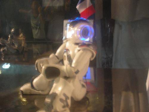 再往里走是一个玻璃制成的展厅,里面有五六个机器人在表演。我费了九牛二虎之力才挤了进去,小机器人大概有一米多高,白色的身体,看起来很可爱。这些小机器人,一会儿站起身来或蹲下去,一会儿挥挥手,扭动一下身子。我观察了一下,它们的动作不是机械重复的,而是自然协调的,好像真人的动作。机器人的表演引来很多游客,我好喜欢那些小机器人,真是高科技的制作,长见识了!