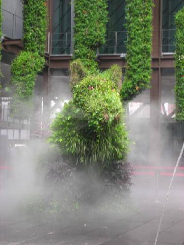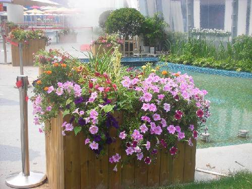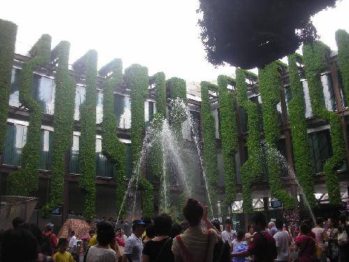 一进入法国馆,就像进入了神话故事中的天堂。这是一个露天的小广场,广场四周有许多个绿色的柱子。咦?这绿色好像不是染上去的。走近一看,噢,原来是绿色植物做成的呀。柱子外层是供植物生长的花泥,绿色的爬墙植物就在柱子上生活。这样的柱子好有立体感呀!小广场的四周有许多个这样的“绿柱子”,把广场装点得格外美丽。植物有净化空气的作用,所以这里的空气格外的清新。广场正中还有几个喷泉,它们喷射的水流忽高忽低,溅起白色的水花,发出“哗哗”的声音。喷泉使这里变得凉爽宜人。哇,简直就是人间仙境啊!喷泉旁边还有一只可爱的“小狗”,浑身都是用草编织而成的,眼睛是用花朵做的,很有趣!