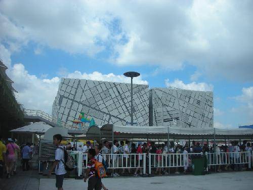 下车了,我们也加入了排队的“长龙”。今天,我要重点参观法国馆。这里排队的栏杆不是直的,而是拐来拐去的。眼看着就要到门口了,离门口只差一步之遥,可实际上还要绕上一大圈呢,唉,郁闷!天气太热了,还好天上有喷洒的凉雾,挺清爽的。啊,终于排到了,一看表,哇塞,法国馆只排了四十多分钟,好高兴!门口的法国阿姨把门打开,把我们“放”了进去。