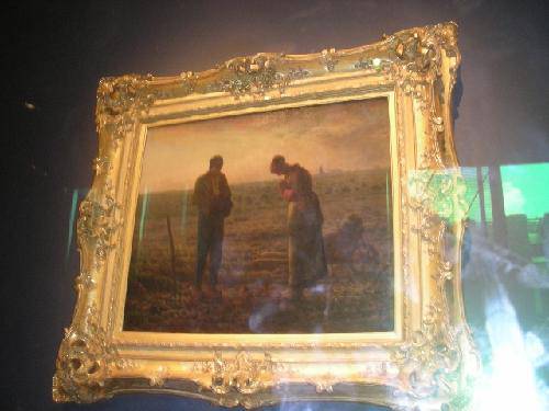 看过了法国馆外馆,我们坐着电梯上了内馆。哇,墙壁上有好几幅漂亮油画!走近一看,原来是法国画家塞尚、米勒等的杰作,而且都是真品哦!油画上的人物、背景,都比画册上的好看,立体,颜色也很真实。原来光在课本上见过,这次来一饱眼福啦!