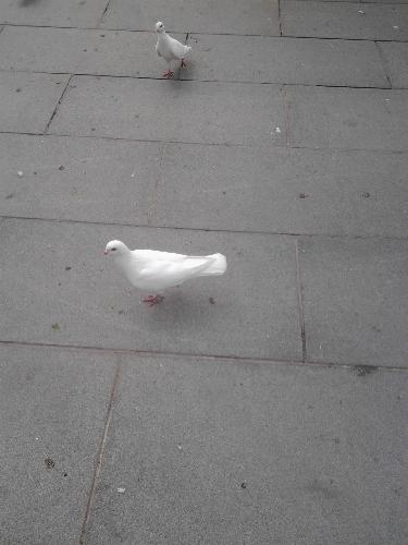 说是一群,其实亦不太合适,用数不胜数形容才贴切。那一只只洁白的,像用雪捏出来的鸽子,红眼皮里镶嵌着一双熠熠闪光的黑宝石,鲜红的爪子,迈着悠闲的步伐,尤如绅士一般,颇有“不管风吹浪打,胜似闲庭信步”的成竹在胸。偶有鸽子身上有几丝黑点,那又怎么样呢?恰像画家绝妙的点睛之笔!