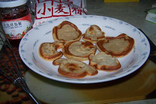 翻翻说明书,原来做蛋糕也不过如此嘛。我先将鸡蛋打入搅拌盆内,加入白糖、草莓果酱和炼奶。随后就是巨大的搅拌工程了,这可把我给累坏了,本以为这是一件很简单的事情,可不试不知道,一试吓一跳,原本自以为是两三分钟的小事,竟然一下折腾了十几分钟才弄好。接下来,我又往盆里添加了自发小麦粉和色拉油,在搅拌成糊状后倒入了量杯。嗯,弄得还不错嘛,虽然怪麻烦的,不过我还挺满意。当当当当!就剩最后一步啦!我在已经预热了两分钟的蛋糕机模型里刷上一层色拉油,随后小心翼翼的把已经准备好的材料倒了进去。接下来的事情就是等待了。(话说倩倩忽然感觉时间过得好漫长啊)