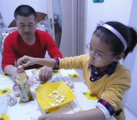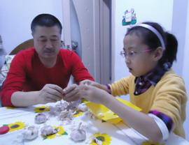 瞧:我和姥爷在腌制腊八蒜呢!