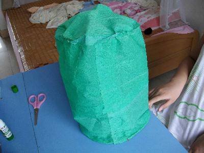 第一,把薄纸剪成若干张纸片,将第一张纸片的一边与第二张的一边粘在一起,再粘第三张,直到拼成一个两端镂空的球状,像一个灯笼一样。