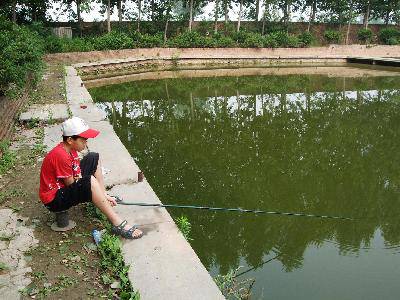 有了第一次的胜利,我充满了信心。可接下来,我越来越失望,浮标半天也没反应。周围的伯伯一条一条的收获真不少,我越等越没耐心,开始东瞅西看,塘边坐着的垂钓者,都在一动不动盯着水中的目标,就象一座座雕塑一样。