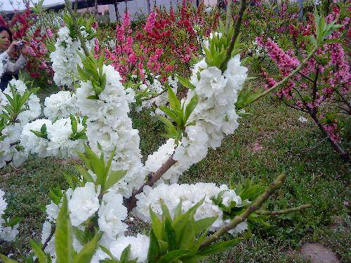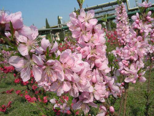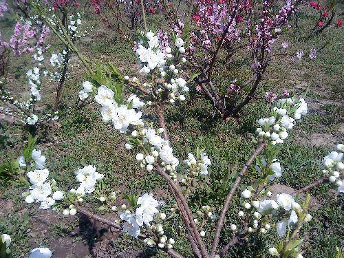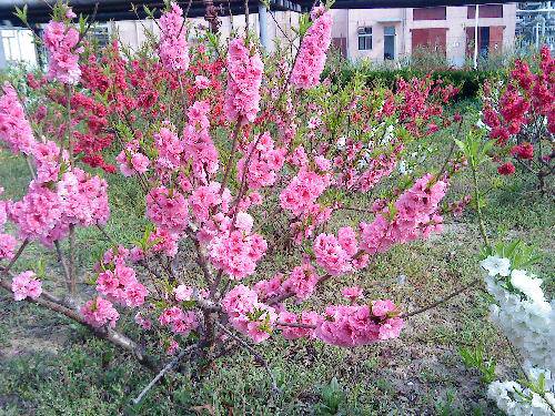 单位申办濮阳市文明创建单位,绿化算得上一流水平。每到初春时刻,靠近西南围墙的樱桃林高高矮矮的枝杈上错落有致地开满了白色的小花,如雪如玉,冰晶玉洁。还没等樱桃花凋零,马路两边的白玉兰已亭亭玉立,绽放自己的精彩。随着气温的回升,办公室后面的桃树就等不及似的开始吐露绿色了,新抽的枝条上爬满了鲜嫩的芽,星星点点,透着生机,没等你俯下身子,它就孩子似地冲你吐舌头、眨眼睛,水汪汪、绿盈盈,惊喜料峭的天空透着一股新绿。三五天过后,枝条上已有了新意,枝桠舒展,结满了豆粒大的花蕾。天气稍加晴朗,那一串串、一簇簇的花朵就压满枝头,一树的粉红,一树的繁花,红的似火、粉的似霞,白的似雪,蓬蓬勃勃,灿若云霞,你拥着我,我约着你,每一朵都那么热情,那么奔放,拼足了气力似的尽情绽放。瞧!每一个枝头间都孕育着差异,含苞待放的精致,饱满展开的烂漫,大的娇艳,小的妩媚,走进细瞧,那白色的桃花如绢如丝,层层叠叠挂满枝头,嫩绿色的叶子也探出头来,随粉蝶舞动的节奏摇曳着,风情万种,迎着风中花香,贪婪地吸吮着,一股清凉的新鲜和精灵浸入心脾,令人如痴如醉。