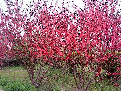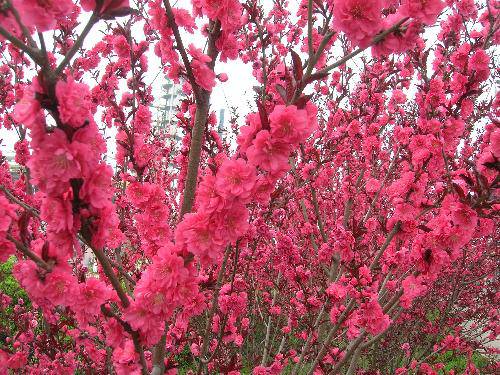 桃花虽没有牡丹的娇贵、梅花的冷艳、茶花的热情,可她有专属于自己的那份娇羞、那份妩媚、那份艳丽。桃花可成林,桃花可独木,顺势而下,你会发现桃花的枝干是青灰色的,不粗不细,壮实滚圆,还略带点光滑,给人一种健美感。微风一吹,绽满桃花的枝干轻轻摇摆,极像青春美少女在舒展着婀娜的身姿清歌曼舞。