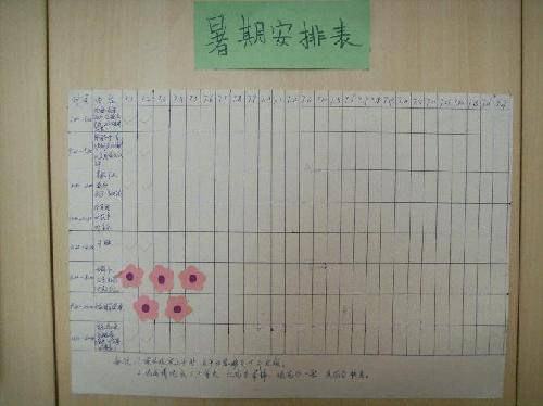这样一安排,我感觉好像也没有那么乱了!妈妈说,计划制定容易,难的是坚持做下去!我要和妈妈一起努力,过一个快乐而充实的暑假!