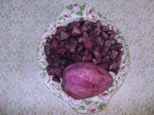 去皮切丁后的紫薯