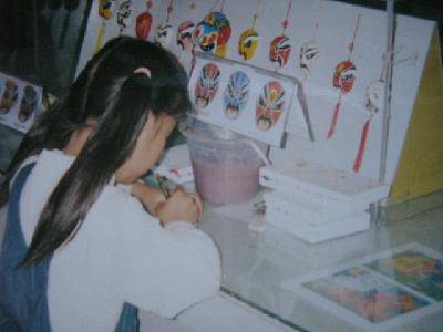“蓝脸的窦尔敦盗御马,红脸的关公战长沙,黑脸……”哼着《唱脸谱》的曲子,看着亲手绘制的,那寓意丰富、反映人物性格的五彩脸谱,心里高兴极了,这可是我制作的第一个脸谱饰品呀。我仔细端详着自己的“杰作”,洋洋得意。你看:那蓝色的底儿,一双炯炯有神的的圆眼,两道鲜艳的黄眉毛,再配上脸部五彩的花纹,整个脸谱活灵活现,好似古时一员威武的大将军。
