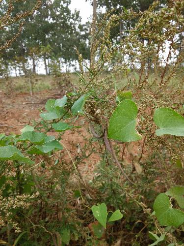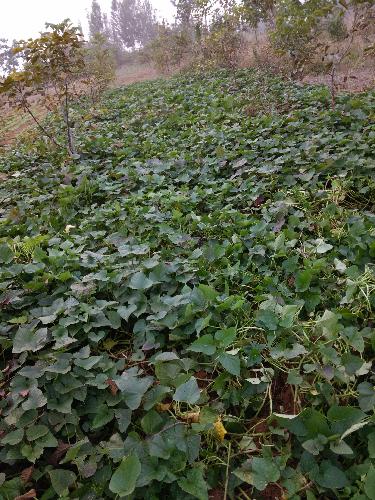 沿小路上来,视野开阔起来。远处,群山相依,梯田层层相连,村舍掩藏在绿树丛中;不远处是一片挂满果实的果园和一片苍劲挺拔的杨树林;眼前则是一片高粱地,满眼的红高粱穗,随风舞动;那边是一片红薯地,可一个红薯都看不到,只看到一片翠绿的红薯秧,妈妈告诉我,红薯的果实和花生的果实一样是埋在泥土里的。妈妈掐了一把嫩红薯叶,要用它做面条,谁知红薯地里有一棵灰圪针,扎了妈妈一裤腿的针芒。植物也知道团结互助、抵御敌人呀!