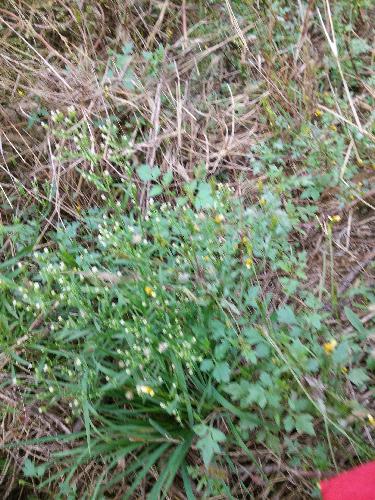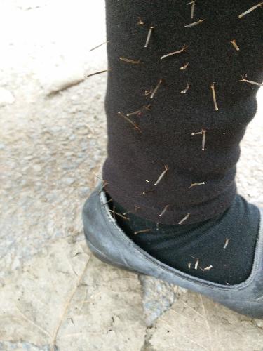 爬到小路半坡处,我发现:小路一边有一块麦田,刚出来不久的麦苗绿油油的,生机勃勃。麦田边放着一些干玉米杆,大概是地的主人忙着种麦子,未及时清理走上茬的玉米杆吧!