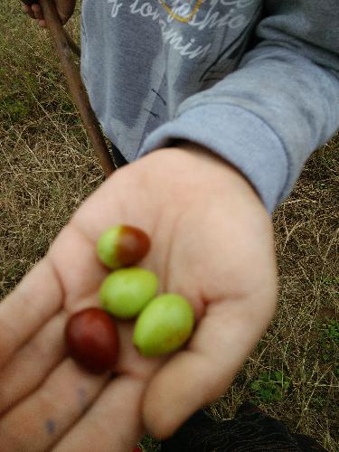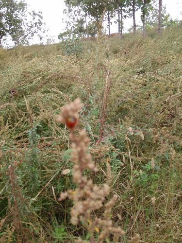 我们把车停放路边,步行往前,一条慢坡的小路映入眼帘,小路上铺满了绿中泛黄的野草;小路两旁金黄色、淡紫色、淡粉色的小菊花,花团锦簇,竞相开放,一阵阵香气扑鼻而来,沁人心脾……我们被吸引,沿路而上。哇!那一族菊花后面是一棵小山枣树,树上挂满了红玛瑙一般、诱人的小山枣,我摘了一些,吃起来又脆又甜,特别好吃!
