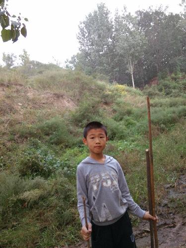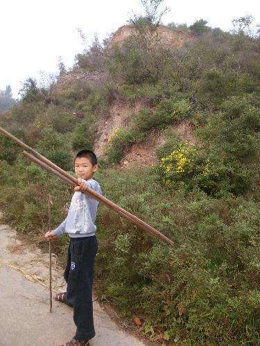 从路边的农舍小院里传出狗的叫声,它会不会跑出来咬人?没关系,我有打狗棒呢!