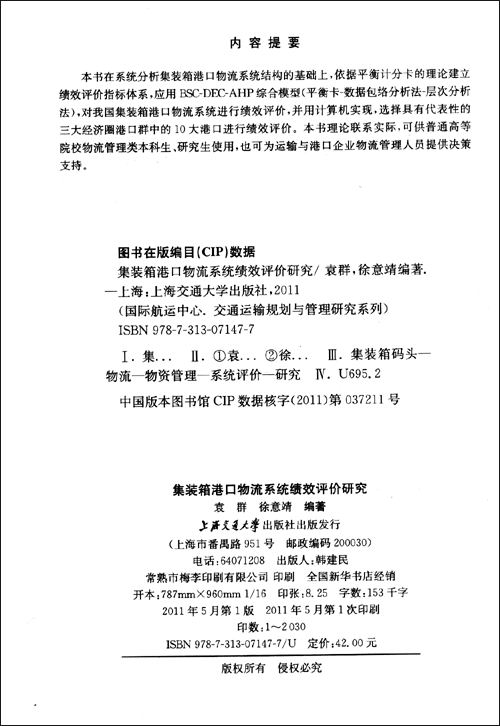 《集装箱港口物流系统绩效评价研究》是由上海市重点学科建设项目资助出版的。