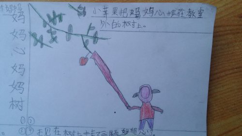 小苹果回到学校,将妈妈心挂在了教室外面的大树上,上课的时候也可以看到妈妈心。 第二天,大树上突然挂满了“妈妈心”,原来是同学们受到小苹果的“妈妈心”的启发,也都纷纷请自己的妈妈做了一颗“心”挂在了大树上。这下子可热闹了,“妈妈心”将这些陌生的小朋友也拉近了距离,感到了他们在这个大集中里的温暖、热爱、安全、亲密。大家不再陌生,不再孤单。