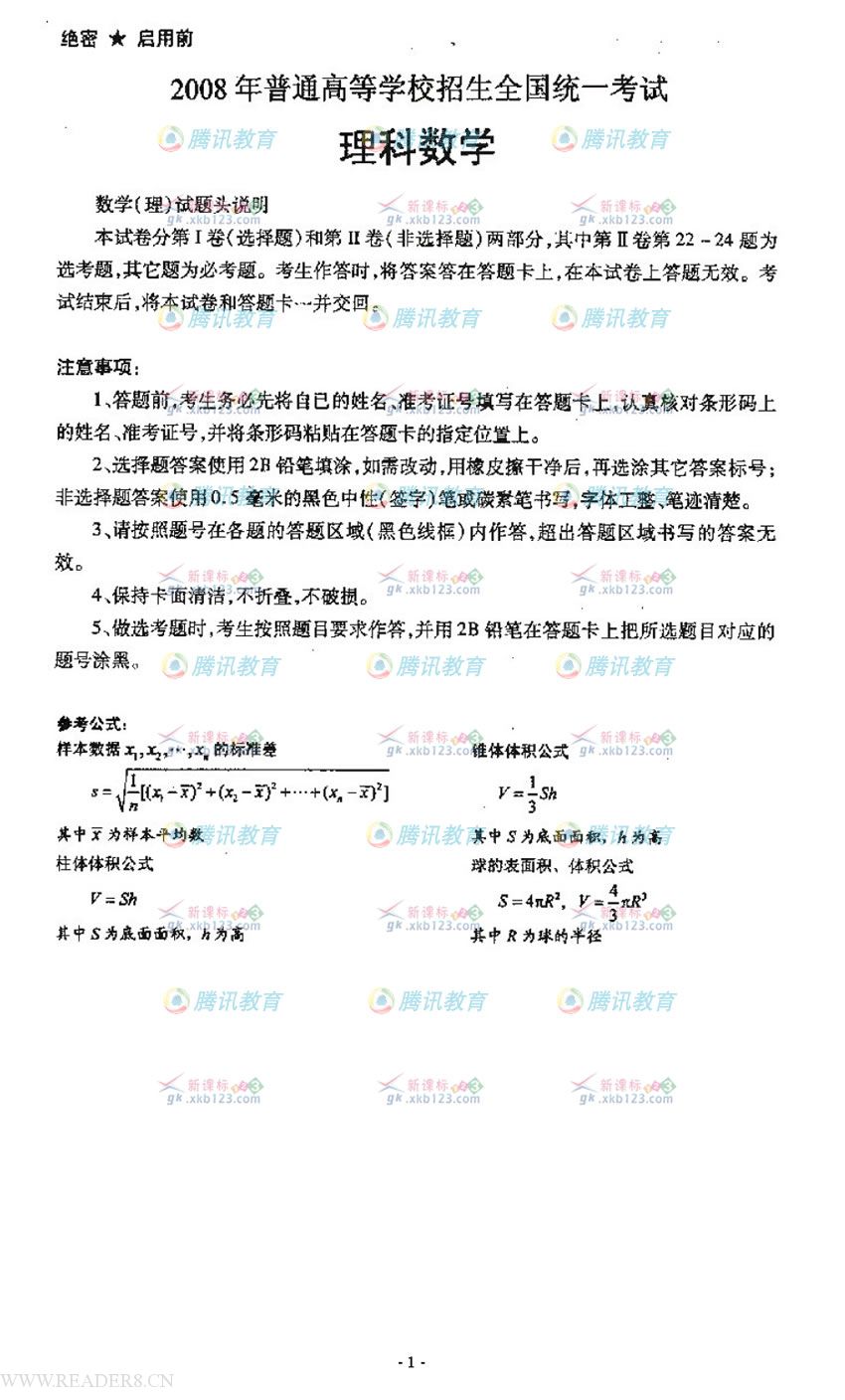 2008年普通高校招生统一考试宁夏卷(理数) (图1) ...