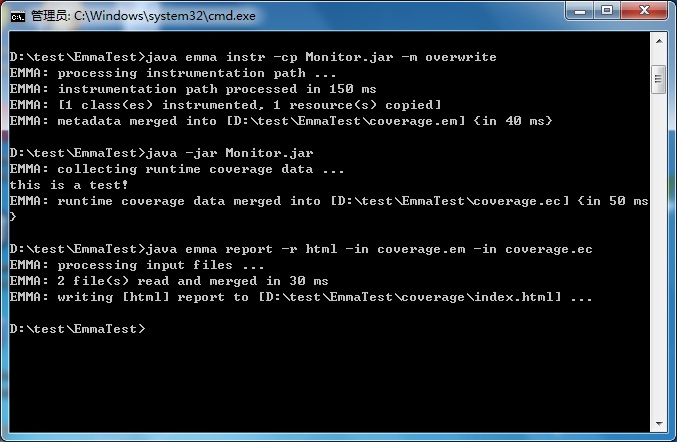 使用java emma调用显示emma的使用方式表示emma加入classpath成功;