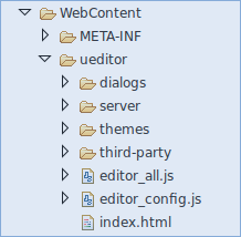 //保存文件路径String filePath = "ueditor/server/upload/uploadimages";String realPath = request.getRealPath("/") + filePath;String newFileName = "";//判断路径是否存在,不存在则创建File dir = new File(realPath);if(!dir.isDirectory()) dir.mkdir();if(ServletFileUpload.isMultipartContent(request)){ DiskFileItemFactory dff = new DiskFileItemFactory(); dff.setRepository(dir); dff.setSizeThreshold(1024000); ServletFileUpload sfu = new ServletFileUpload(dff); FileItemIterator fii = sfu.getItemIterator(request); String title = ""; //图片标题 String url = ""; //图片地址 String fileName = "";String state="SUCCESS"; while(fii.hasNext()){ FileItemStream fis = fii.next(); try{ if(!fis.isFormField() && fis.getName().length()>0){ fileName = fis.getName();Pattern reg=Pattern.compile("[.]jpg|png|jpeg|gif$");Matcher matcher=reg.matcher(fileName);if(!matcher.find()) {state = "文件类型不允许!";break;}newFileName = new Date().getTime()+fileName.substring(fileName.lastIndexOf("."),fileName.length()); url = realPath+"/"+ newFileName; BufferedInputStream in = new BufferedInputStream(fis.openStream());//获得文件输入流 FileOutputStream a = new FileOutputStream(new File(url)); BufferedOutputStream output = new BufferedOutputStream(a); Streams.copy(in, output, true);//开始把文件写到你指定的上传文件夹 }else{ String fname = fis.getFieldName(); if(fname.indexOf("pictitle")!=-1){ BufferedInputStream in = new BufferedInputStream(fis.openStream()); byte c [] = new byte[10]; int n = 0; while((n=in.read(c))!=-1){ title = new String(c,0,n); break; } } } }catch(Exception e){ e.printStackTrace(); } }title = title.replace("&", "&").replace("'", "&qpos;").replace(""", """).replace("<", "<").replace(">", ">"); response.getWriter().print("{'url':'uploadimages/"+newFileName+"','title':'"+title+"','state':'"+state+"'}");}