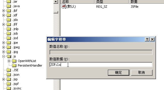 恢复js文件在windows默认打开方式 问题出现如图所示:解决办法:打开注册表编辑器,定位 "HKEY_CLASSES_ROOT" > ".js" 这一项,双击默认值将数值数据改为"JSFile"即可;久违的默认js图标回来了: