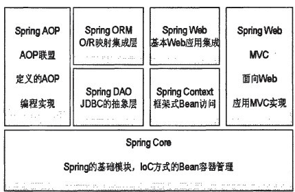 根据上面的图形,我们很容易的看出spring的模块是由哪些组成的。现在,我们来详细的看看spring的各个模块