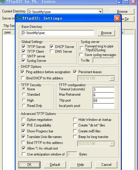 把Base Directory设置成“D:\boottftp\pxe”;