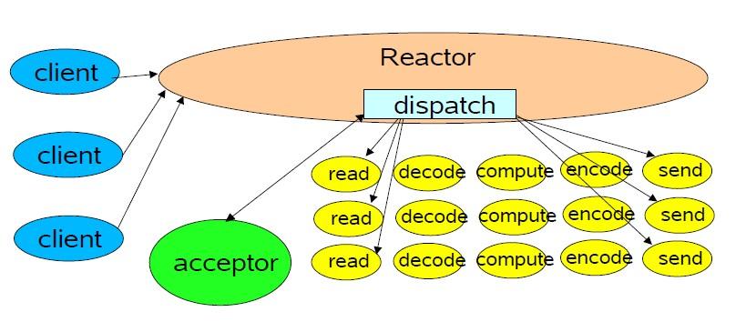 package com.zzq.nio.reactor;import java.io.IOException;import java.net.InetSocketAddress;import java.nio.ByteBuffer;import java.nio.channels.SelectionKey;import java.nio.channels.Selector;import java.nio.channels.ServerSocketChannel;import java.nio.channels.SocketChannel;import java.util.Iterator;public class Reactor implements Runnable {    private ServerSocketChannel serverSocketChannel = null;    private Selector            selector            = null;    public Reactor() {        try {            selector = Selector.open();            serverSocketChannel = ServerSocketChannel.open();            serverSocketChannel.configureBlocking(false);            serverSocketChannel.socket().bind(new InetSocketAddress(8888));            SelectionKey selectionKey = serverSocketChannel.register(selector,                SelectionKey.OP_ACCEPT);            selectionKey.attach(new Acceptor());            System.out.println("服务器启动正常!");        } catch (IOException e) {            System.out.println("启动服务器时出现异常!");            e.printStackTrace();        }    }    public void run() {        while (true) {            try {                selector.select();                Iterator<SelectionKey> iter = selector.selectedKeys().iterator();                while (iter.hasNext()) {                    SelectionKey selectionKey = iter.next();                    dispatch((Runnable) selectionKey.attachment());                    iter.remove();                }            } catch (IOException e) {                e.printStackTrace();            }        }    }    public void dispatch(Runnable runnable) {        if (runnable != null) {            runnable.run();        }    }    public static void main(String[] args) {        new Thread(new Reactor()).start();    }    class Acceptor implements Runnable {        public void run() {            try {                SocketChannel socketChannel = serverSocketChannel.accept();                if (socketChannel != null) {                    System.out.println("接收到来自客户端("                                       + socketChannel.socket().getInetAddress().getHostAddress()                                       + ")的连接");                    new Handler(selector, socketChannel);                }            } catch (IOException e) {                e.printStackTrace();            }        }    }}class Handler implements Runnable {    private static final int READ_STATUS  = 1;    private static final int WRITE_STATUS = 2;    private SocketChannel    socketChannel;    private SelectionKey     selectionKey;    private int              status       = READ_STATUS;    public Handler(Selector selector, SocketChannel socketChannel) {        this.socketChannel = socketChannel;        try {            socketChannel.configureBlocking(false);            selectionKey = socketChannel.register(selector, 0);            selectionKey.interestOps(SelectionKey.OP_READ);            selectionKey.attach(this);            selector.wakeup();        } catch (IOException e) {            e.printStackTrace();        }    }    public void run() {        try {            if (status == READ_STATUS) {                read();                selectionKey.interestOps(SelectionKey.OP_WRITE);                status = WRITE_STATUS;            } else if (status == WRITE_STATUS) {                process();                selectionKey.cancel();                System.out.println("服务器发送消息成功!");            }        } catch (IOException e) {            e.printStackTrace();        }    }    public void read() throws IOException {        ByteBuffer buffer = ByteBuffer.allocate(1024);        socketChannel.read(buffer);        System.out.println("接收到来自客户端(" + socketChannel.socket().getInetAddress().getHostAddress()                           + ")的消息:" + new String(buffer.array()));    }    public void process() throws IOException {        String content = "Hello World!";        ByteBuffer buffer = ByteBuffer.wrap(content.getBytes());        socketChannel.write(buffer);    }}