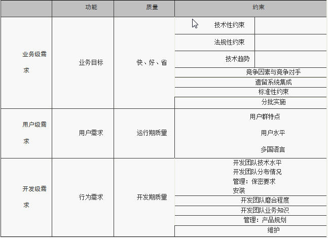 用户需求是指描述用户使用产品必须要完成什么任务,怎么完成需求,通常是在问题定义的基础上进行用户访谈、调查,对用户使用的场景进行整理,从而建立从用户角度的需求。用户需求必须能够体现软件系统将给用户带来的业务价值 ,或用户要求系统必须能完成的任务,也就是说用户需求描述了用户能使用系统来做些什么(what),这个层次的需求是非常重要的。用例、用户故事、特性等都是表达用户需求的有效途径。