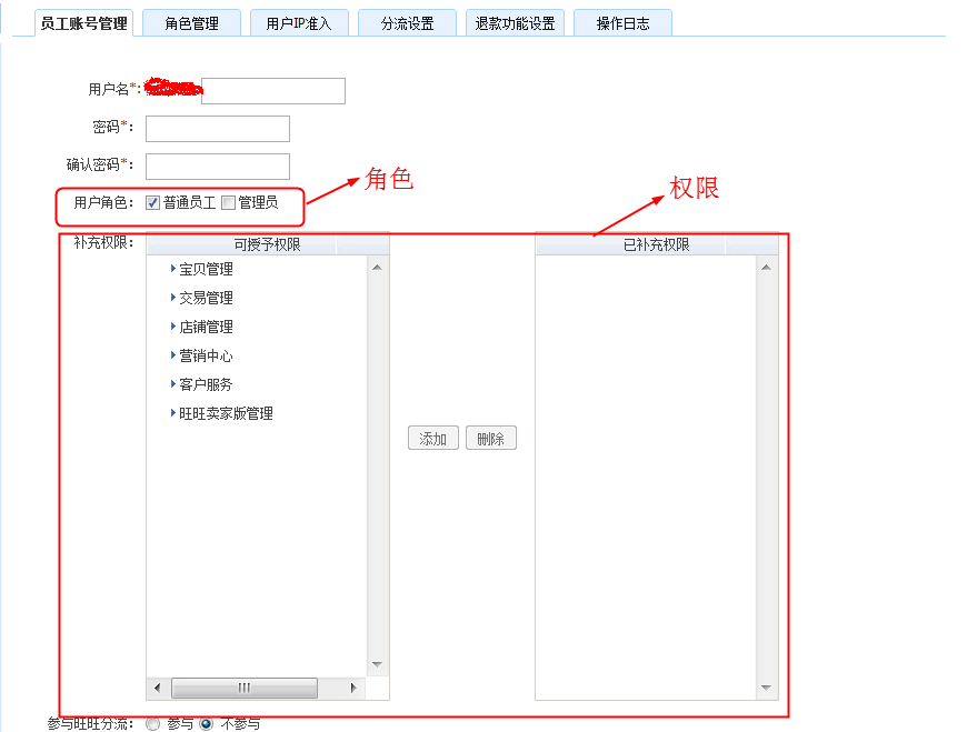 下面是淘宝卖家后台的权限分配界面: