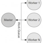 通过在master上维护一个消息队列(queue), 然后分发到slave机器上的worker进行处理. 该方案能解决上一种方案中的其中一台机器挂掉造成的局部处理失败的问题.