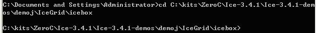1)ICE安装目录为“C:\kits\ZeroC\Ice-3.4.1\”,现将“C:\kits\ZeroC\Ice-3.4.1\Ice-3.4.1-demos\demoj\IceGrid\icebox” 起别名为:“%demo_gridbox%”,作为工作目录。