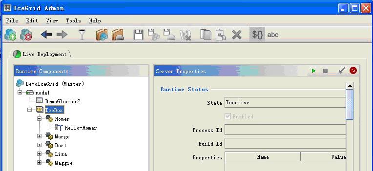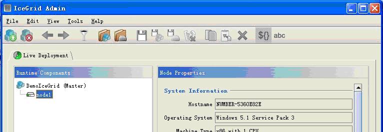 执行后,切换到IceGrid Admin管理工具可以看到添加的应用,在node1下已经被展示出来。