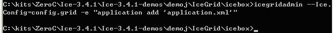 $icegridadmin --Ice.Config=config.grid -e "application add 'application.xml'"