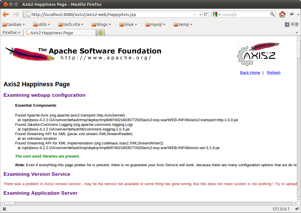 [INFO] [SimpleAxisServer] Started[SimpleAxisServer] Started[INFO] Listening on port 8080