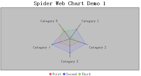 改的时候,决定新建一个chart类,通过继承JFreechart自带例子中的SpiderWebPlot类来实现,SpiderWebPlot类的demo效果见下图。