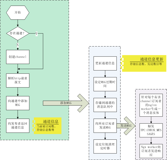 发布时,模块先将消息转化为ngx_http_push_stream_msg_t的数据结构进行存储。