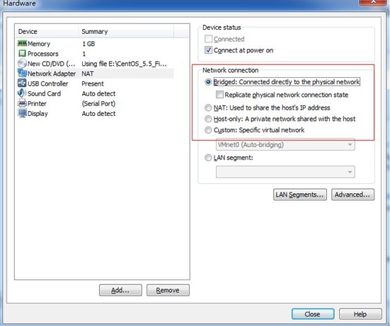 7.还有就是需要配置NetWork Adapter.一定要选择桥接,它能保证系统之内的操作系统和外面的系统之间可以正常通信,然后点击Finish完成安装。