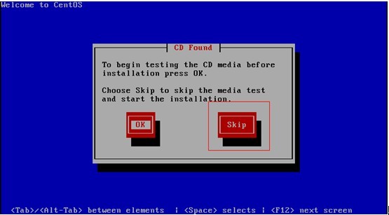 启动后 会进入到一个蓝色的界面。这里选skip跳过 不检测光盘。否则会检测一段时间。