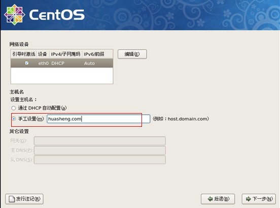 剩余的空闲分区不管他。直接下一步,下一步进入到网络设置。