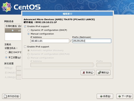 16.点击编辑按钮,手动设置IP,网关暂时不配置,我们暂时不用上网。需要上网的,以后也可以配置。