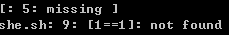linux下的if判断出现错误[: 5: missing ] if [$SHELL_CMD_TYPE -eq 1]; 1.第一个中括号的前后必须要空格 第二个中括号的前面必须有空格2.但是$SHELL_CMD_TYPE即便是1里说的都满足了,如果$SHELL_CMD_TYPE可能为空的话 脚本一样会报错。
