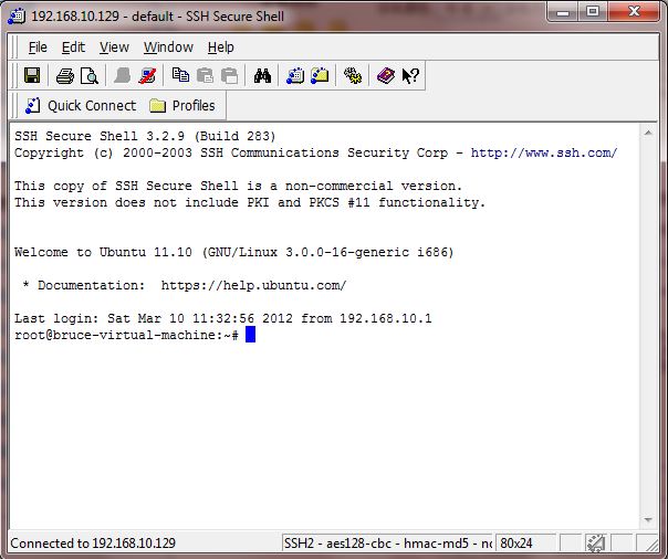 [需求] 在win7环境下用SSH(SecureShell)连接本地的一台虚拟机上ubuntu(11.10)系统