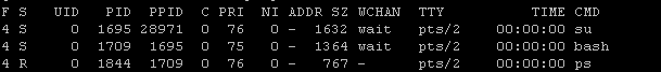 root 5881 0.0 0.3 5212 1024 pts/0 S 10:22 0:00 su