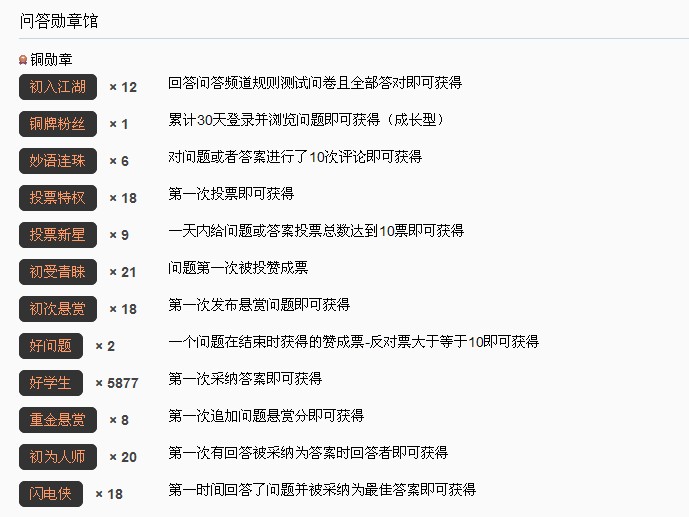 有些勋章可重复获得多枚,有些只能获得一次,如需查看自己已获得的勋章,请打开“我的问答”。点击每个勋章可查看最近获得该勋章的用户或获得该勋章的问题/答案。