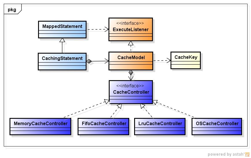 该接口表示采用某种策略的缓存管理者,缓存数据实际维护在CacheController实现类中。ibatis框架默认提供了四种缓存管理策略:MemoryCacheController提供了基于reference类型的管理策略;FifoCacheController提供了"先进先出"方式的管理策略;LruCacheController提供了"近期最少使用"的管理策略;OSCacheController提供了基于OSCache2.0缓存的管理策略。每种策略的实现方式将在下文介绍。