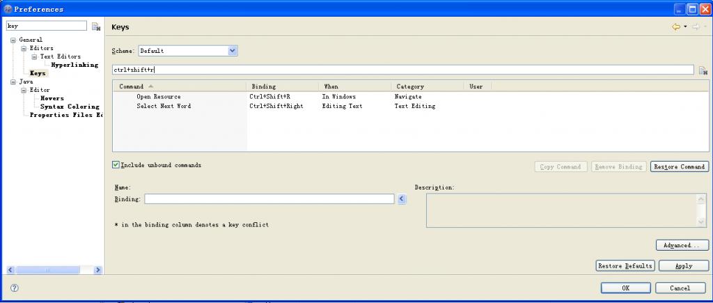 myEclipse open Resource ( ctrl +shift+r )快捷键 失效 解决方案1.查看 myeclipse 中是否 与 其他的快捷