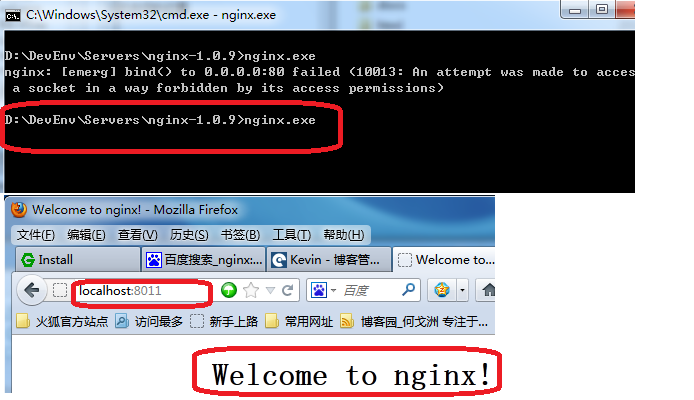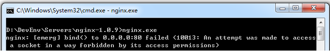 下载nginx-1.0.9.zip,然后解压到一个目录即可以。然后运行“nginx.exe”文件即可,但开始无法原型,运行后,界面一闪而过。不知道什么原因,无法运行成功。