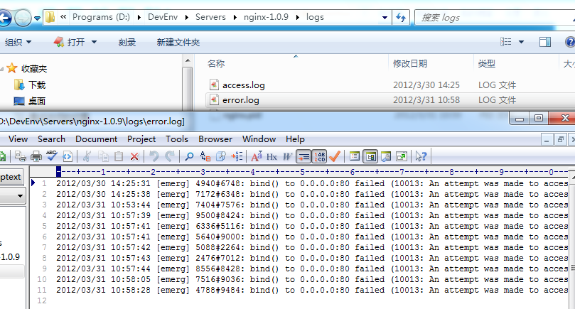 于是到官网下了个window版本的nginx,版本为nginx-1.0.9,但是运行是发现无法启动。