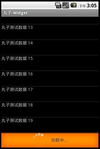 package com.iaiai.activity;import android.app.ListActivity;import android.os.Bundle;import android.util.Log;import android.view.Gravity;import android.view.View;import android.view.ViewGroup;import android.widget.AbsListView;import android.widget.AbsListView.OnScrollListener;import android.widget.BaseAdapter;import android.widget.LinearLayout;import android.widget.LinearLayout.LayoutParams;import android.widget.ListView;import android.widget.ProgressBar;import android.widget.TextView;/** * * <p> * Title: IaiaiActivity.java * </p> * <p> * E-Mail: 176291935@qq.com * </p> * <p> * QQ: 176291935 * </p> * <p> * Http: iaiai.iteye.com * </p> * <p> * Create time: 2011-6-26 * </p> * * @author 丸子 * @version 0.0.1 */public class IaiaiActivity extends ListActivity implements OnScrollListener {private static final String TAG = "IaiaiActivity";private listViewAdapter adapter = new listViewAdapter();private int lastItem = 0;/** * 设置布局显示为目标有多大就多大 */private LayoutParams WClayoutParams = new LinearLayout.LayoutParams(LinearLayout.LayoutParams.WRAP_CONTENT,LinearLayout.LayoutParams.WRAP_CONTENT);/** * 设置布局显示目标最大化 */private LayoutParams FFlayoutParams = new LinearLayout.LayoutParams(LinearLayout.LayoutParams.FILL_PARENT,LinearLayout.LayoutParams.FILL_PARENT);private ProgressBar progressBar;protected void onCreate(Bundle savedInstanceState) {super.onCreate(savedInstanceState);Log.i(TAG, "onCreate(Bundle savedInstanceState)");// 线性布局LinearLayout layout = new LinearLayout(this);// 设置布局 水平方向layout.setOrientation(LinearLayout.HORIZONTAL);// 进度条progressBar = new ProgressBar(this);// 进度条显示位置progressBar.setPadding(0, 0, 15, 0);layout.addView(progressBar, WClayoutParams);TextView textView = new TextView(this);textView.setText("加载中...");textView.setGravity(Gravity.CENTER_VERTICAL);layout.addView(textView, FFlayoutParams);layout.setGravity(Gravity.CENTER);LinearLayout loadingLayout = new LinearLayout(this);loadingLayout.addView(layout, WClayoutParams);loadingLayout.setGravity(Gravity.CENTER);// 得到一个ListView用来显示条目ListView listView = getListView();// 添加到脚页显示listView.addFooterView(loadingLayout);//registerForContextMenu(listView);//setListAdapter(adapter);listView.setOnScrollListener(this);}public void onScroll(AbsListView v, int firstVisibleItem,int visibleItemCount, int totalItemCount) {lastItem = firstVisibleItem + visibleItemCount - 1;System.out.println("lastItem:" + lastItem);Log.i(TAG, "lastItem:" + lastItem);}public void onScrollStateChanged(AbsListView v, int state) {if (lastItem == adapter.count&& state == OnScrollListener.SCROLL_STATE_IDLE) {adapter.count += 10;adapter.notifyDataSetChanged();Log.i(TAG, "lastItem:" + lastItem);}}/** * 要用用于生成显示数据 */class listViewAdapter extends BaseAdapter {int count = 10;public int getCount() {Log.i(TAG, "count:" + count);return count;}public Object getItem(int pos) {Log.i(TAG, "pos:" + pos);return pos;}public long getItemId(int pos) {return pos;}public View getView(int pos, View v, ViewGroup p) {TextView view = new TextView(IaiaiActivity.this);view.setText("丸子测试数据 " + pos);Log.i(TAG, "entry: " + pos);view.setHeight(50);return view;}}}
